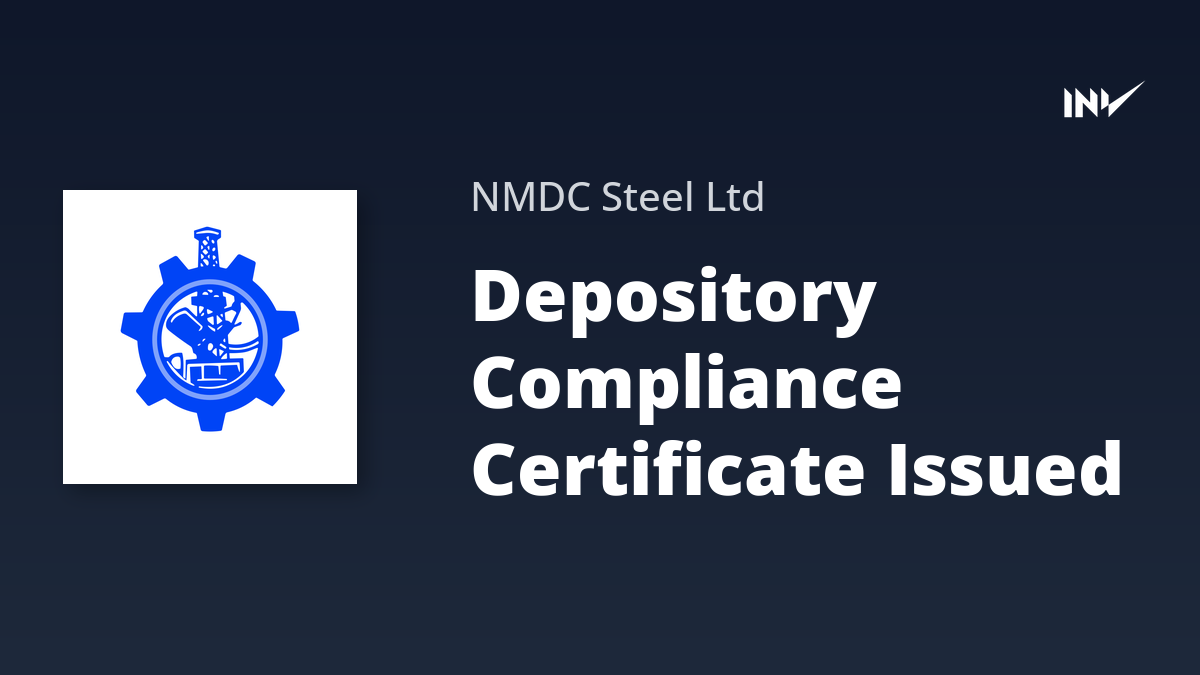 NMDC Steel has announced that it is compliant with SEBI’s Depository regulations. A compliance certificate was received from Aarthi Consultants Pvt. Ltd., the company’s Registrar and Share Transfer Agents, for the quarter ended December 31, 2025. This confirms adherence to regulations concerning depositories and participants.