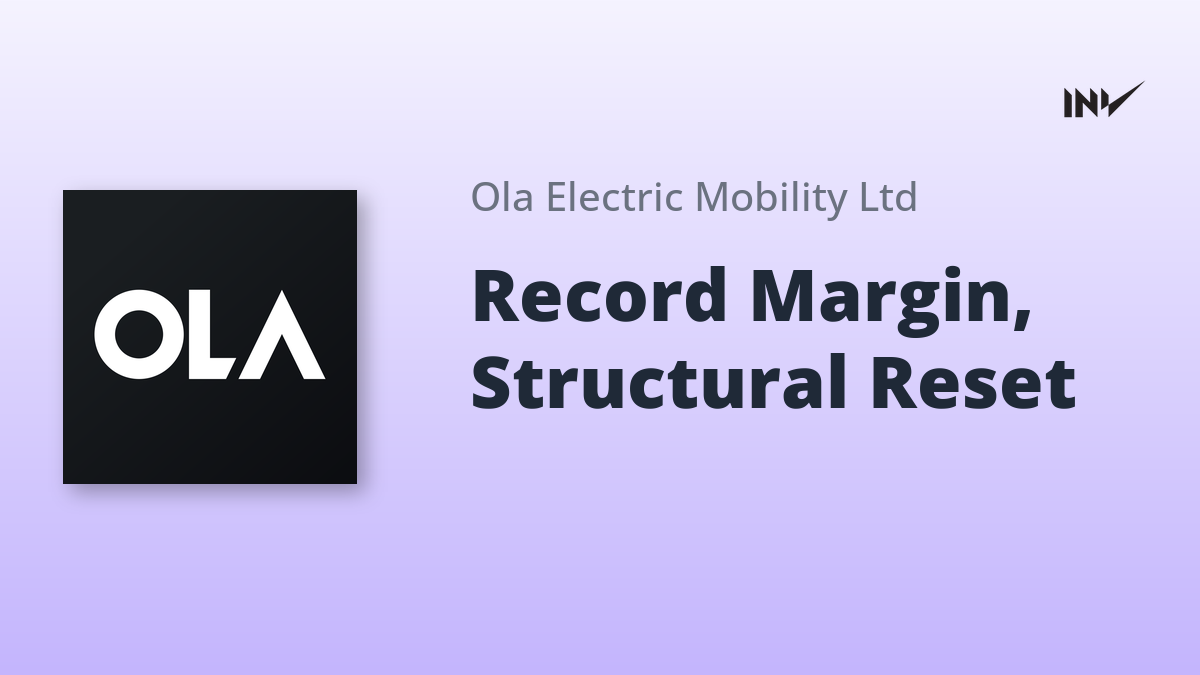 Ola Electric announced its Q3 FY26 results, marked by a structural operating model reset focused on cost realignment and service execution. The company delivered a record consolidated gross margin of 34.3%, up 15.7 percentage points year-over-year. Operational highlights include reducing quarterly opex from a peak of ₹840 Cr to ₹484 Cr, with a target of ₹250-300 Cr soon, setting the EBITDA breakeven at approximately 15,000 units monthly.
