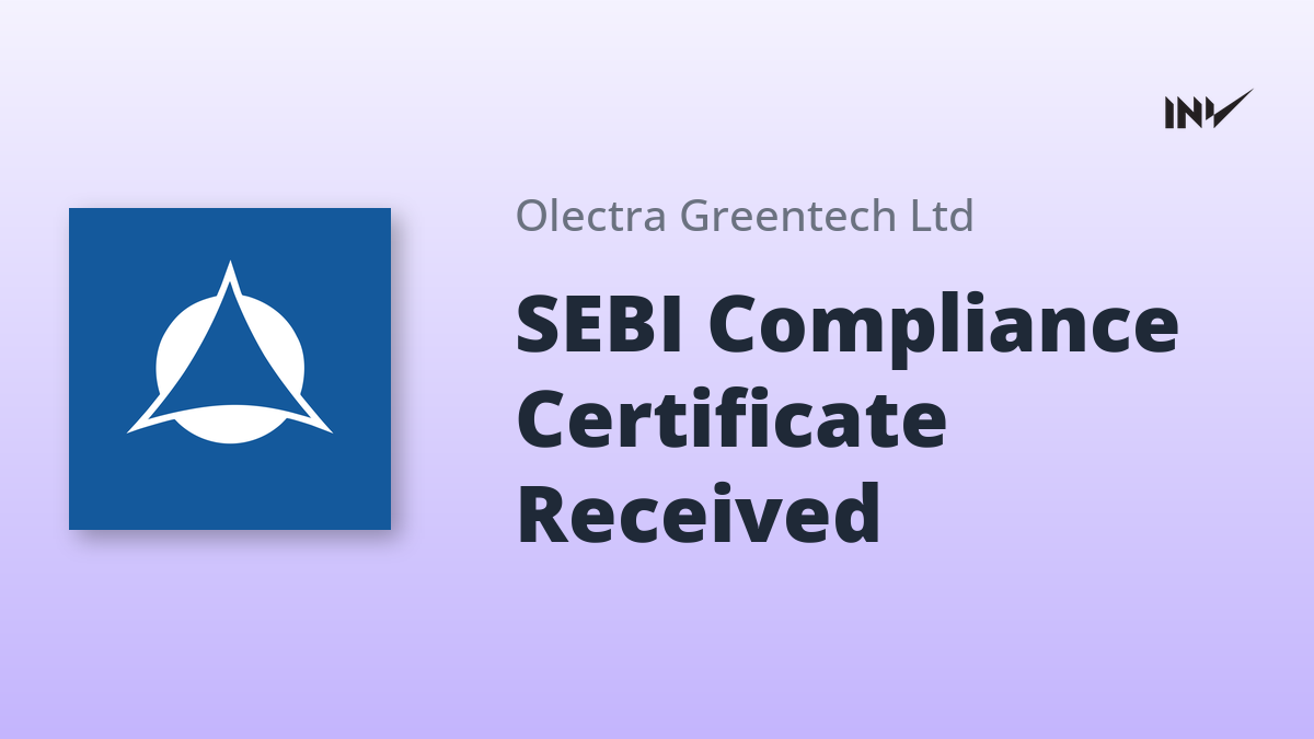 Olectra Greentech has announced the receipt of a certificate confirming compliance with specific regulations. This certificate pertains to Regulation 74(5) of the SEBI (Depositories and Participants) Regulations, 2018. This regulatory adherence ensures proper handling and processing of securities-related activities.