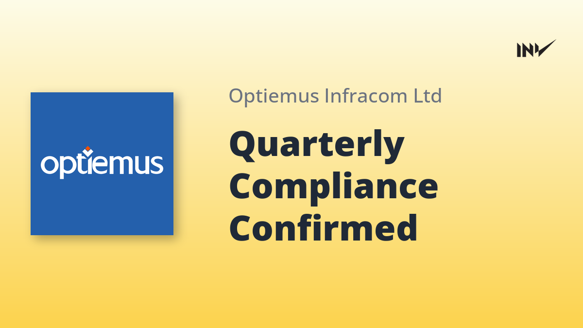 Optiemus Infracom Limited has successfully completed its mandatory security dematerialization procedures for the final quarter of the financial year. The company confirmed that all share certificates received for dematerialization between January 1, 2026, and March 31, 2026, were processed, verified, and updated in the register of members within the mandated 15-day timeframe.