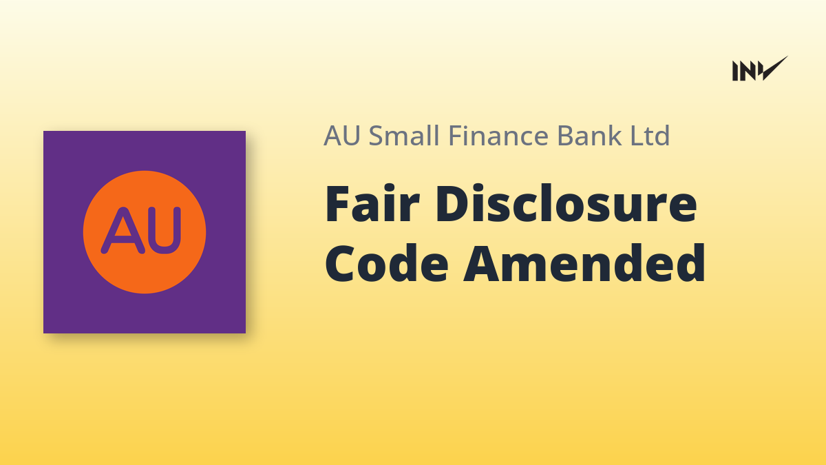 Company Update1 Min Read InvestyWise NewsonOctober 17, 2025 AU Small Finance Bank Board Approves Amendments to Fair Disclosure Code AU Small Finance Bank’s Board of Directors has approved amendments to the Code of Fair Disclosure and Conduct, along with the Policy for…
