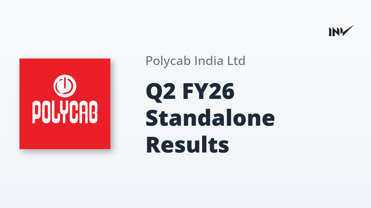 Company Update1 Min Read InvestyWise NewsonOctober 17, 2025 Polycab India Unaudited Standalone Financial Results for Q2 FY26 Polycab India Limited announced its unaudited standalone financial results for Q2 FY26. Revenue from operations stood at ₹63,399.62 million.…