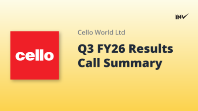 Company Update3 Min Read InvestyWise NewsonFebruary 20, 2026 Cello World Limited Q3 FY26 Results Call Transcript Highlights Mixed Demand and Strategic Ramping Cello World reported mixed demand in Q3 FY26, with revenues of INR 553.7 crores and an EBITDA margin of 22.1%, impacted by stockouts in…