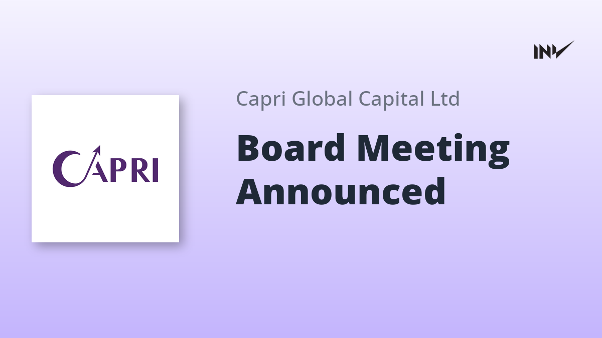 Board Meeting1 Min Read InvestyWise NewsonOctober 14, 2025 Capri Loans Board Meeting Scheduled for October 29, 2025 Capri Loans has announced a board meeting scheduled for October 29, 2025. The meeting will address the approval of the unaudited standalone…