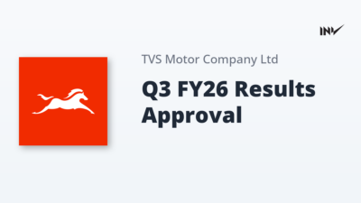 Board Meeting1 Min Read InvestyWise NewsonJanuary 8, 2026 TVS Motor Company Board to Approve Q3 FY26 Financial Results The Board of Directors of TVS Motor Company will convene on January 28, 2026, to consider and approve the unaudited financial results for the…