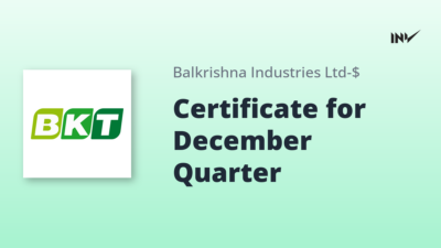 Company Update1 Min Read InvestyWise NewsonJanuary 8, 2026 Balkrishna Industries Certificate for Quarter Ended December 31, 2025 Balkrishna Industries has released a certificate pertaining to the handling of securities for the quarter ended December 31, 2025. The…