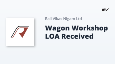 Company Update1 Min Read InvestyWise NewsonJanuary 8, 2026 Rail Vikas Nigam Receives LOA for Wagon POH Workshop from East Coast Railway Rail Vikas Nigam Limited (RVNL) has been awarded a Letter of Acceptance (LOA) from East Coast Railway for setting up a Wagon POH Workshop. The…