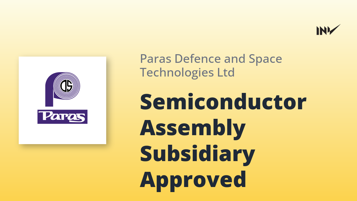 Paras Defence and Space Technologies has approved the incorporation of a subsidiary, Paras Semiconductors Private Limited, or another approved name. The new entity will specialize in advanced heterogeneous packaging and 3D packaging (OSAT) for AI, high-performance computing (HPC), networking, and data centers. The subsidiary’s authorized and paid-up share capital is ₹10,00,000, with Paras Defence holding 70% of the equity.