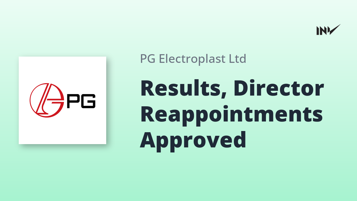 PG Electroplast’s Board of Directors has approved the unaudited financial results for Q3 2026 and the nine months ending December 31, 2025. The board has also approved the reappointment of Mr. Ram Dayal Modi and Mrs. Ruchika Bansal as Independent Directors for a second consecutive term. A review of insider trading policies was conducted, and revisions were approved.