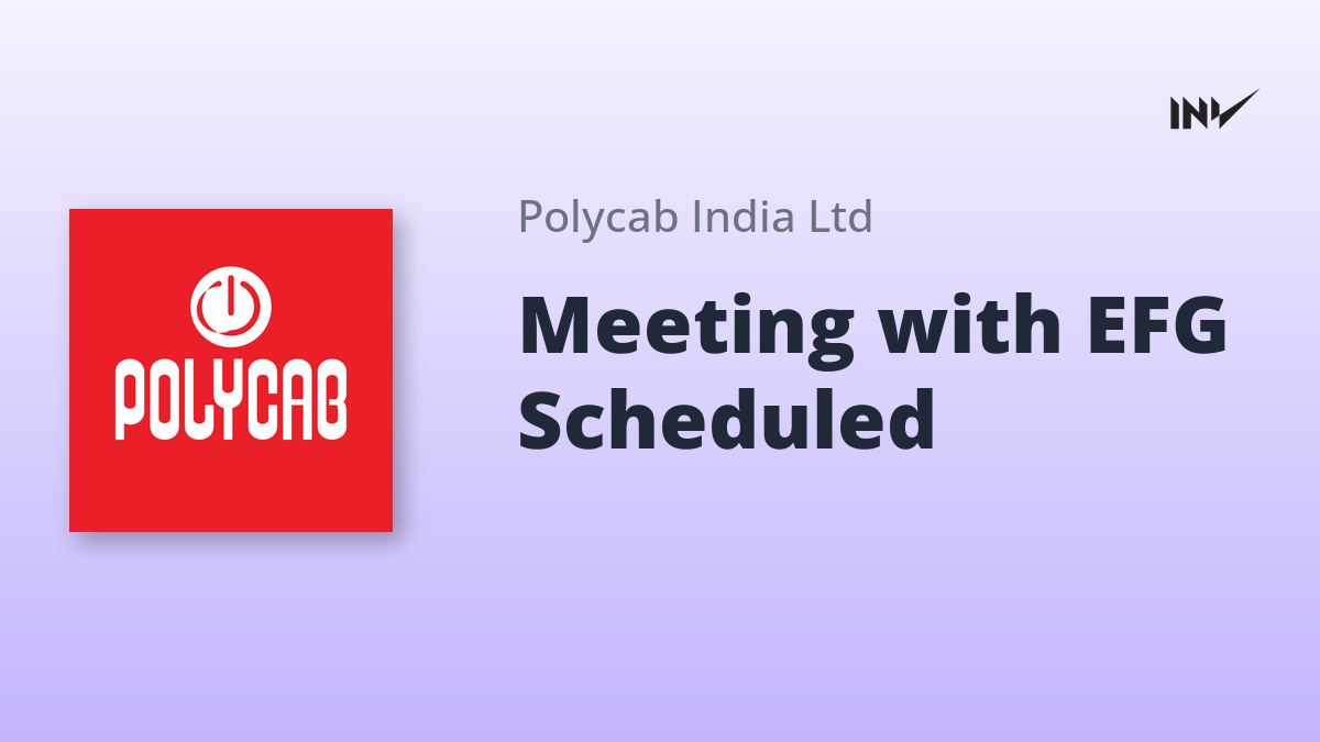 Polycab India has scheduled an investor meeting with EFG Asset Management on September 24, 2025. The meeting will be conducted in a one-on-one format and held virtually. This conference aims to update investors and analysts on the company’s performance and strategic outlook. Further information will be available on the company website.