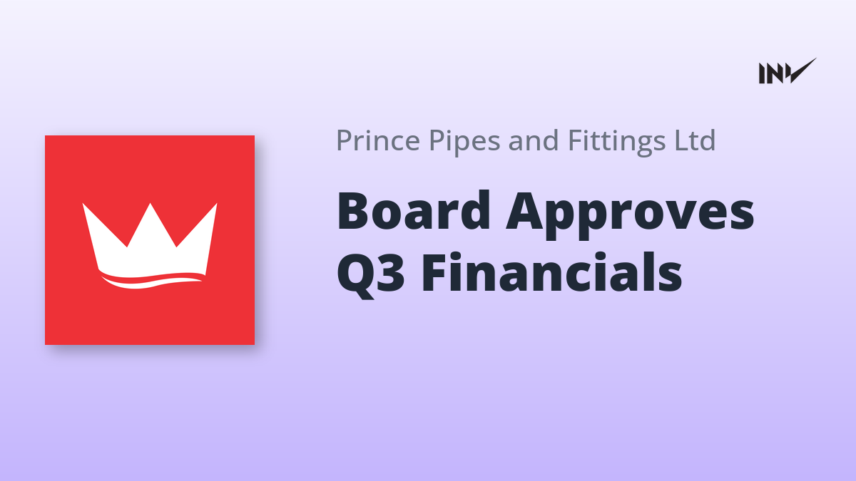 The Board of Directors of Prince Pipes and Fittings Limited convened on Tuesday, February 10, 2026, commencing at 12:30 p.m. and concluding at 4:14 p.m. During the meeting, the Board inter alia considered and formally approved the Unaudited Financial Results for both the quarter and nine months ended December 31, 2025.