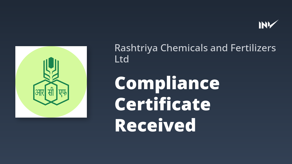 Rashtriya Chemicals and Fertilizers (RCF) has announced the receipt of a compliance certificate relating to the handling of dematerialized securities.