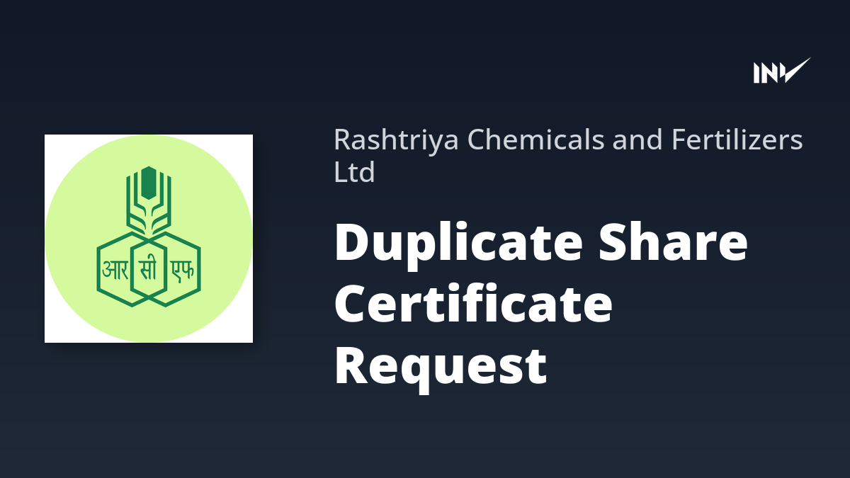 Rashtriya Chemicals and Fertilizers Limited has received an intimation from shareholder Satish Kadam for duplicate share certificates. This involves replacing old certificates with new ones due to loss or damage.