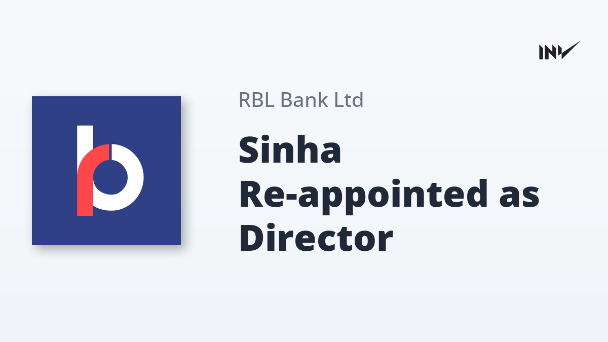 The Board of Directors of RBL Bank has approved the re-appointment of Mr. Chandan Sinha (DIN: 06921244) as a Non-Executive Independent Director. This decision was based on the recommendations of the Nomination and Remuneration Committee.