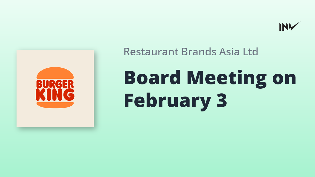 Restaurant Brands Asia will hold a board meeting on February 3, 2026, to review and approve the unaudited standalone and consolidated financial results for the quarter and nine months ending December 31, 2025. The trading window for company securities will remain closed until 48 hours after the results are declared, reopening on February 6, 2026.