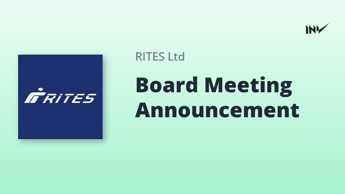 A meeting of the Board of Directors of RITES Limited will be held on Tuesday, November 11, 2025, to discuss and approve the following key items: