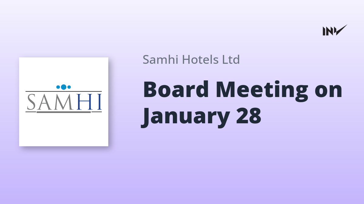 The Board of Directors of SAMHI Hotels is scheduled to convene on January 28, 2026, to review and approve the unaudited financial results for the quarter and nine months ending December 31, 2025. The results will cover both standalone and consolidated performance. The company has already closed its trading window effective January 1, 2026, in accordance with insider trading regulations.