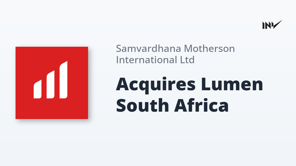Samvardhana Motherson International will acquire the remaining 10% stake in Motherson Lumen Systems South Africa Pty Ltd. (Motherson Lumen SA) through an indirect subsidiary. Upon completion, Motherson Lumen SA will become a wholly-owned indirect subsidiary. The revenue of Target Company was ZAR 135 million in FY 2024-25 and the deal is expected to close in Q3 FY 2025-26.