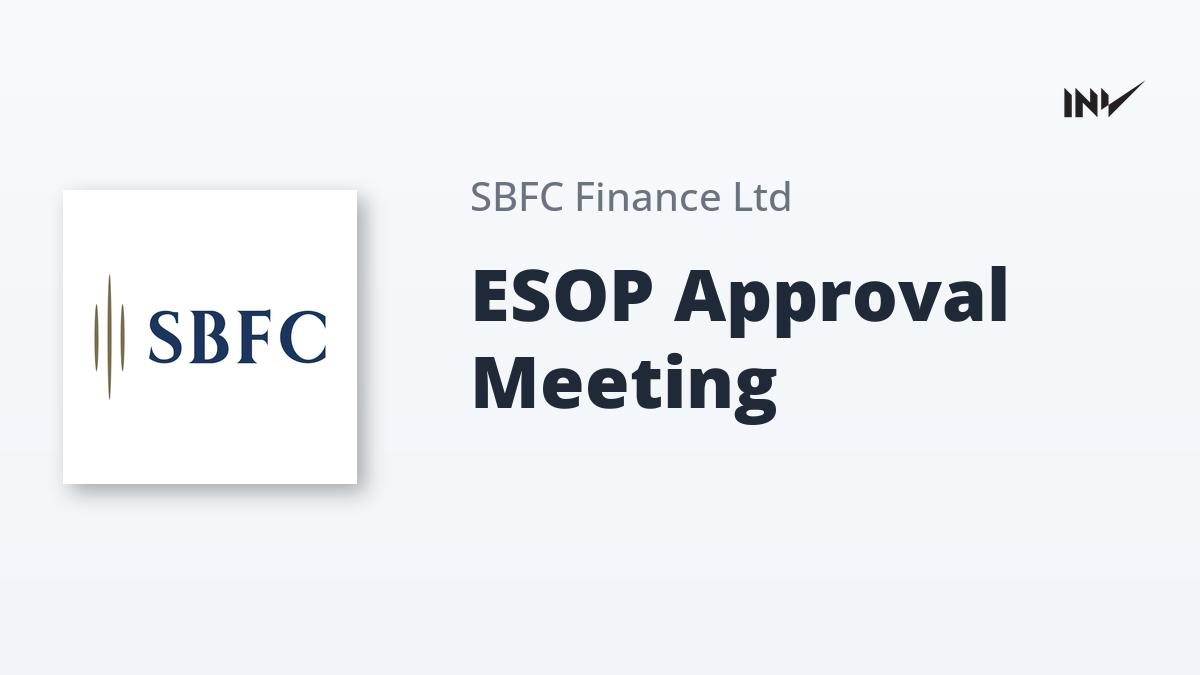 SBFC Finance Limited has announced that a meeting of the Board of Directors will be held on Saturday, November 1, 2025. The primary agenda of the meeting is to consider and approve the Employee Stock Option Policy, subject to the approval of the shareholders of the Company. This announcement was made on October 28, 2025.