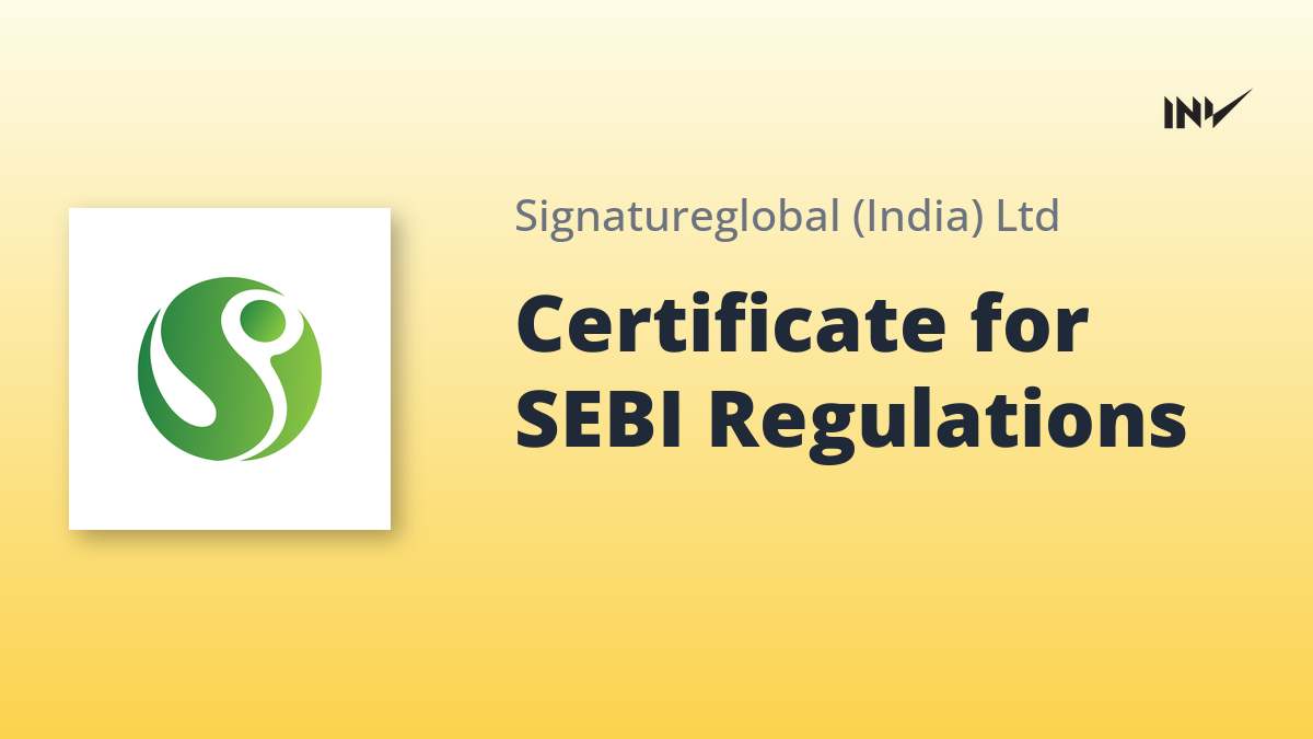 Signature Global confirms receipt of the certificate under Regulation 74(5) of the SEBI (Depositories and Participants) Regulations, 2018. The certificate, provided by MUFG Intime India Private Limited, pertains to the handling of securities during the quarter ending September 30, 2025.
