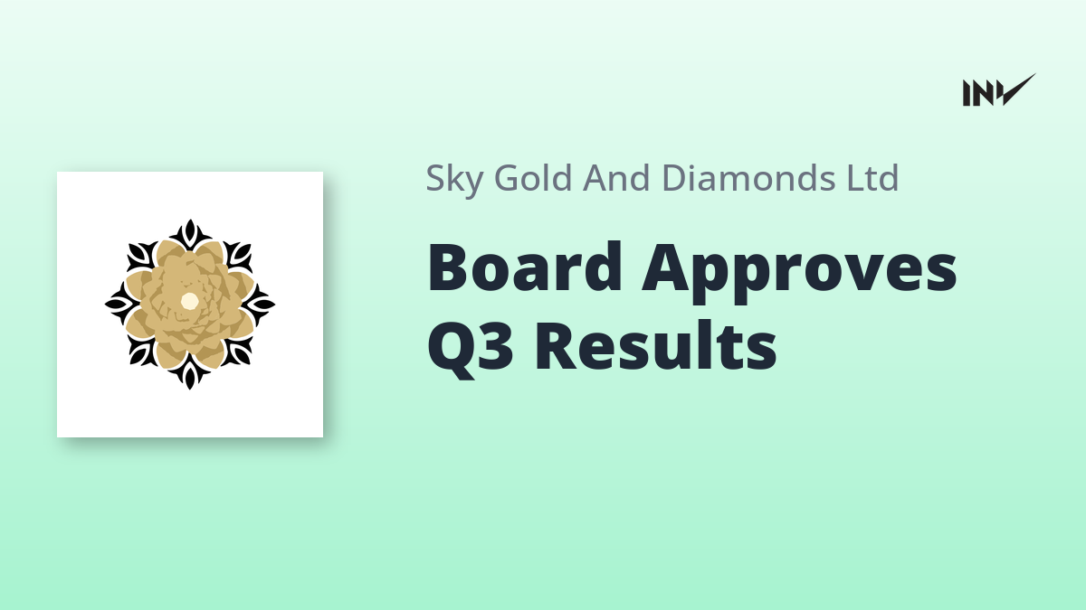 The Board of Directors of Sky Gold & Diamonds Limited convened on February 9, 2026, following prior intimation, to review and approve the financial performance indicators. The meeting commenced at 10:50 A.M. IST and concluded at 11:55 A.M. IST.