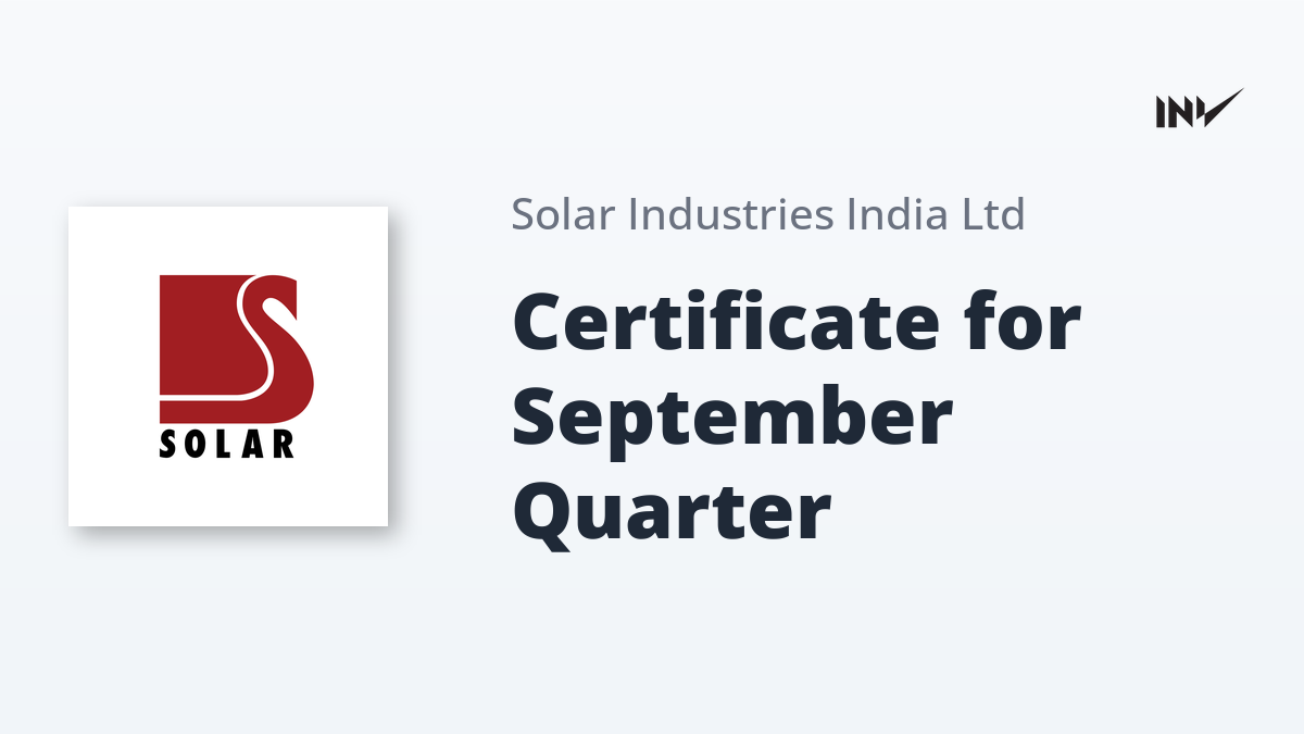 Solar Industries India has received a confirmation certificate from MUFG Intime India Private Limited, its Registrar and Transfer Agent (RTA), pertaining to regulatory requirements.
