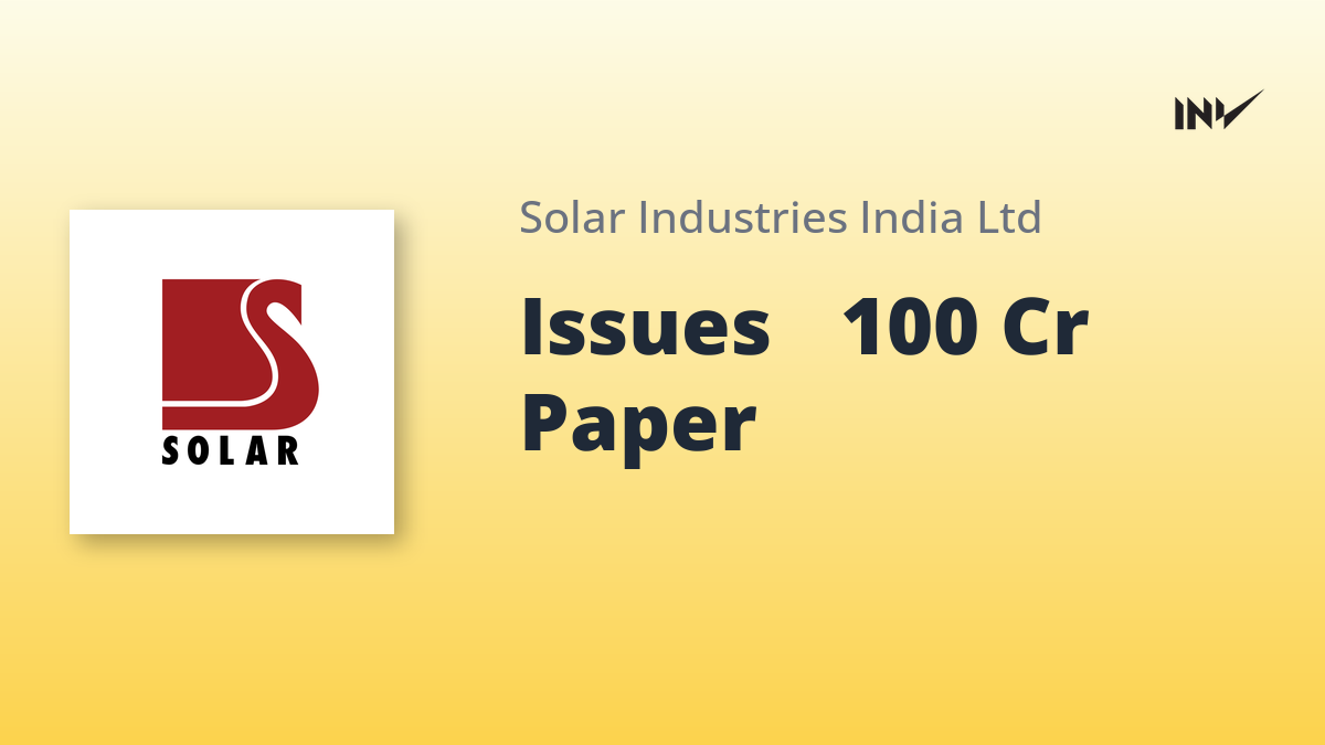 Solar Industries India Limited has announced the issuance of Commercial Paper aggregating to ₹100 crores on December 23, 2025. The Commercial Paper is proposed to be listed on the BSE Limited and has a tenure of 90 days, maturing on March 23, 2026. The coupon rate is set at 6.28%, payable upfront.