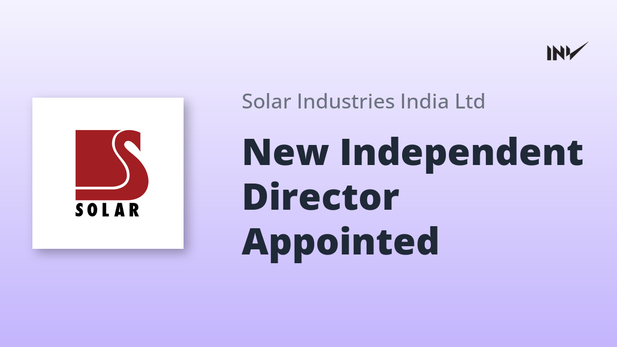 Solar Industries India Limited announced the appointment of Ms. Girija Balakrishnan as an Additional Director, categorized as a Non-Executive Independent Director. This appointment is effective from September 18, 2025, and is for an initial term of five years.