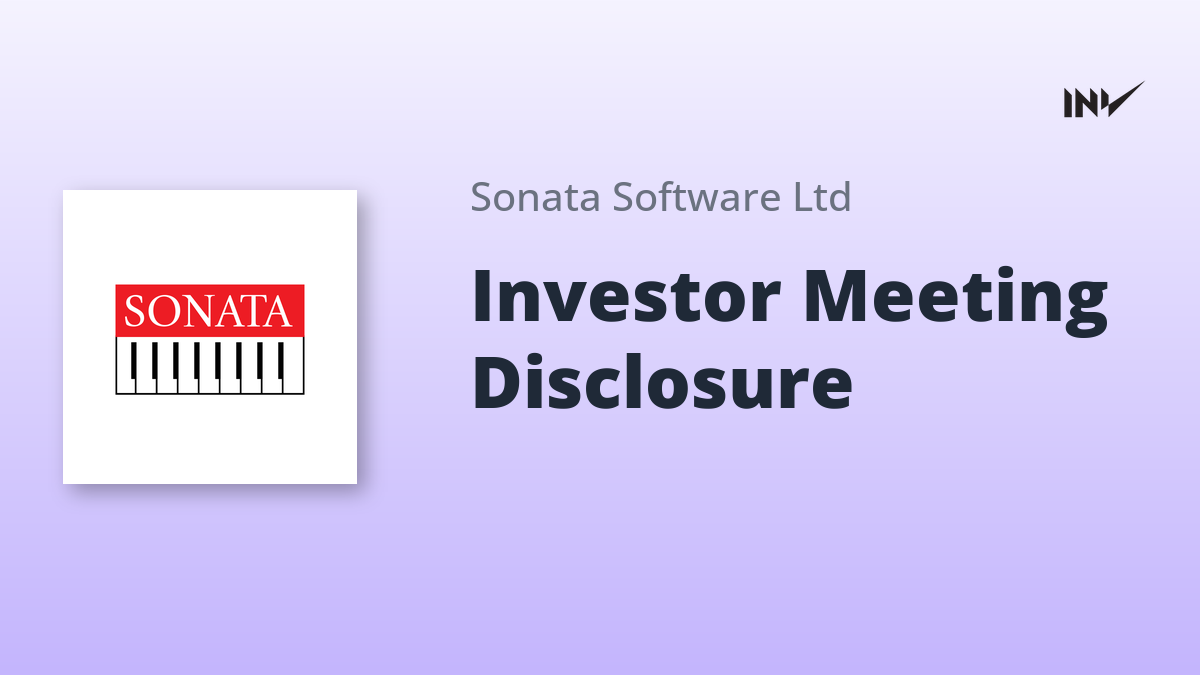 Sonata Software Limited has issued a formal communication regarding a scheduled one-on-one meeting between the Company’s Management and an Institutional Investor/Analyst. This disclosure adheres to regulatory requirements concerning investor interactions.