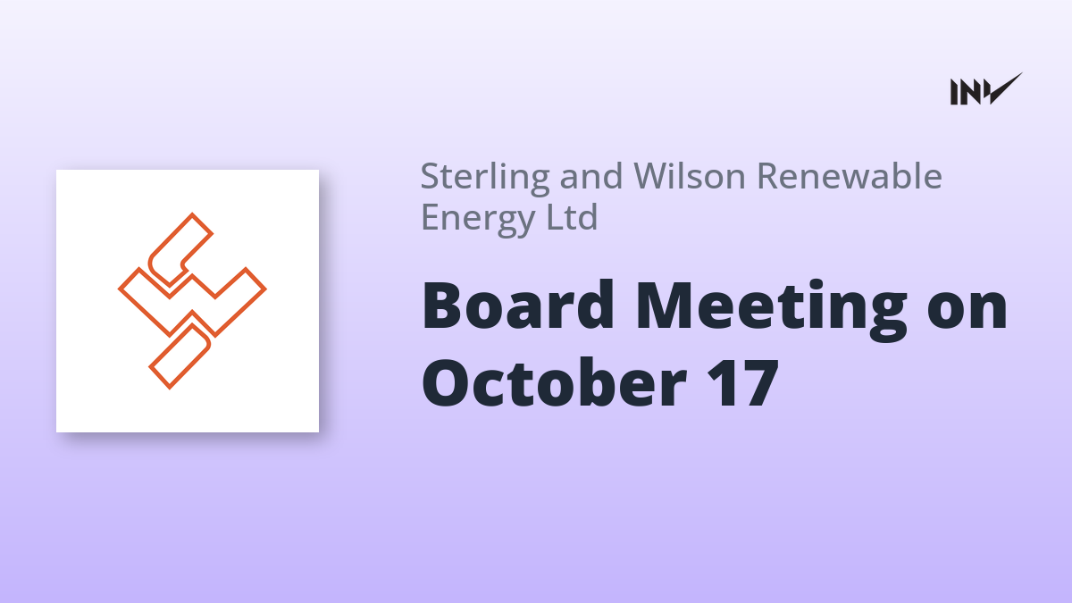 A meeting of the Board of Directors of Sterling and Wilson Renewable Energy Limited is scheduled for Friday, October 17, 2025. The meeting will address the approval of the company’s financial performance.