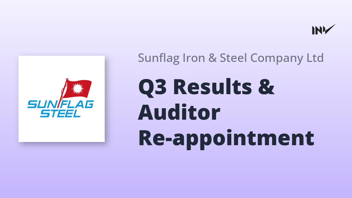 Sunflag Iron & Steel Co. Ltd. announced the outcome of its 205th Board Meeting held on February 13, 2026. The Board approved the Unaudited Financial Results (Standalone and Consolidated) for the Third Quarter (Q3) and Nine Months ended December 31, 2025. Additionally, the Board ratified the re-appointment of M/s. PricewaterhouseCoopers Services LLP as the Internal Auditors for the Financial Year 2026-27.