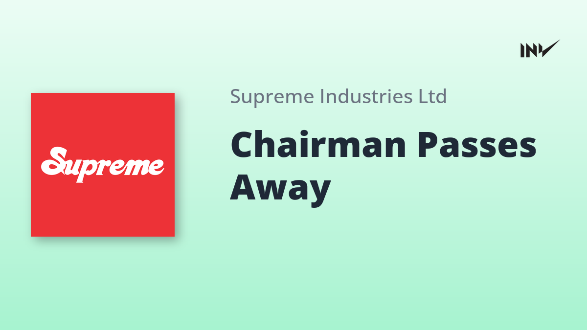 Supreme Industries announces the sad demise of its Chairman, Shri Bajranglal Surajmal Taparia, on January 30, 2026. His passing is an irreparable loss to the company, its directors, and employees. He was also a Promoter and Non-Executive Director.