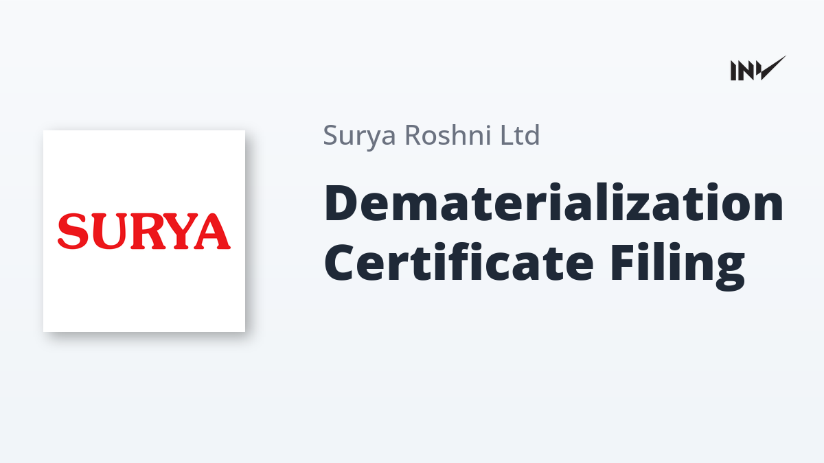 Surya Roshni Limited has submitted its mandatory certificate to the stock exchanges concerning share dematerialization activities for the month ended February 2026. The company confirmed that its Registrar, Mas Services Limited, processed the transactions according to regulatory requirements. The details confirm that 932 shares were dematerialized via NSDL and 884 shares via CDSL during the period, and all corresponding physical certificates were mutilated and cancelled within the stipulated timeframe.