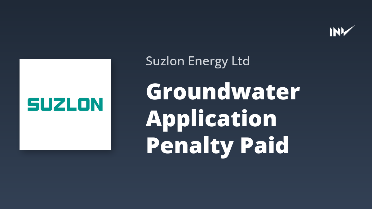 Suzlon Energy has addressed a procedural issue concerning its groundwater usage by paying a penalty. The company has remitted ₹1.00 Lac to the Central Ground Water Authority due to a delay in submitting the application needed to secure a No Objection Certificate (NOC).