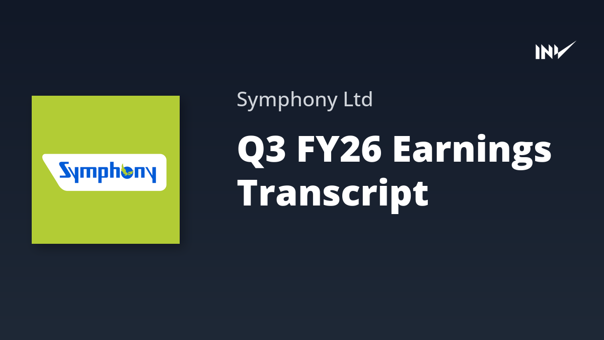 Symphony Limited has released the transcript of its Q3 FY26 earnings conference call, held on January 29, 2026. The call discussed the company’s financial performance, market position, and future outlook. Standalone revenue was ₹182 crores for the quarter, with a PAT of ₹34 crores. Consolidated revenue stood at ₹233 crores. The company has decided to roll back the proposed IB transaction and will continue to nurture its existing businesses.