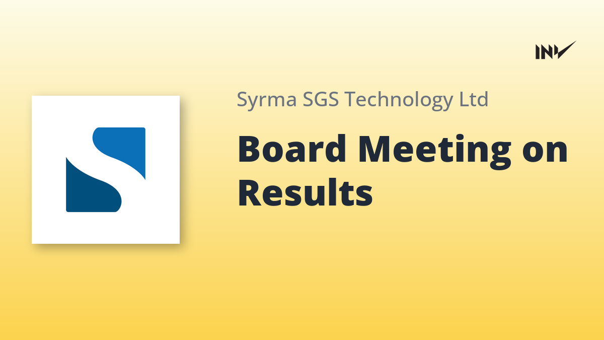 Syrma SGS Technology has announced a board meeting scheduled for November 10, 2025, to review and approve the unaudited financial results for the quarter and half-year ended September 30, 2025. The company will also keep the trading window closed for designated persons until 48 hours after the results are declared. The information will be available on the company website.