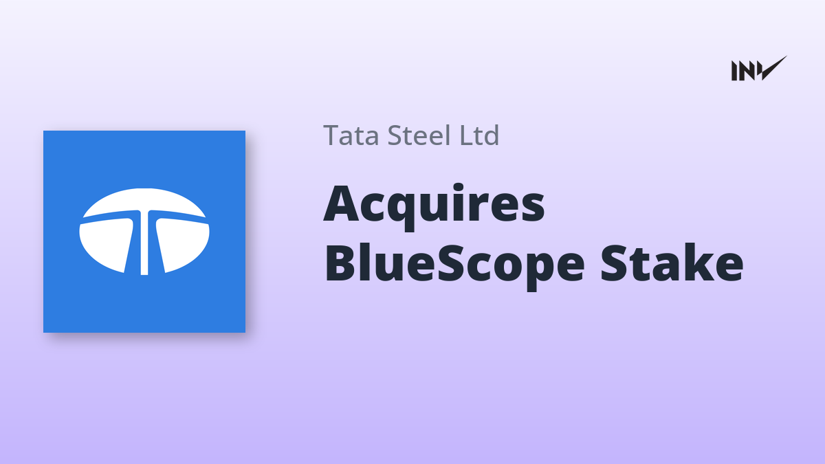 Tata Steel has announced the acquisition of the remaining 50% equity stake in Tata BlueScope Steel Private Limited (TBSPL) from BlueScope Steel Asia Holdings Pty Ltd for up to ₹1,100 crore. This acquisition will make TBSPL an indirect wholly owned subsidiary. The transaction is subject to customary conditions and regulatory approvals and is expected to be completed in 3-4 months.