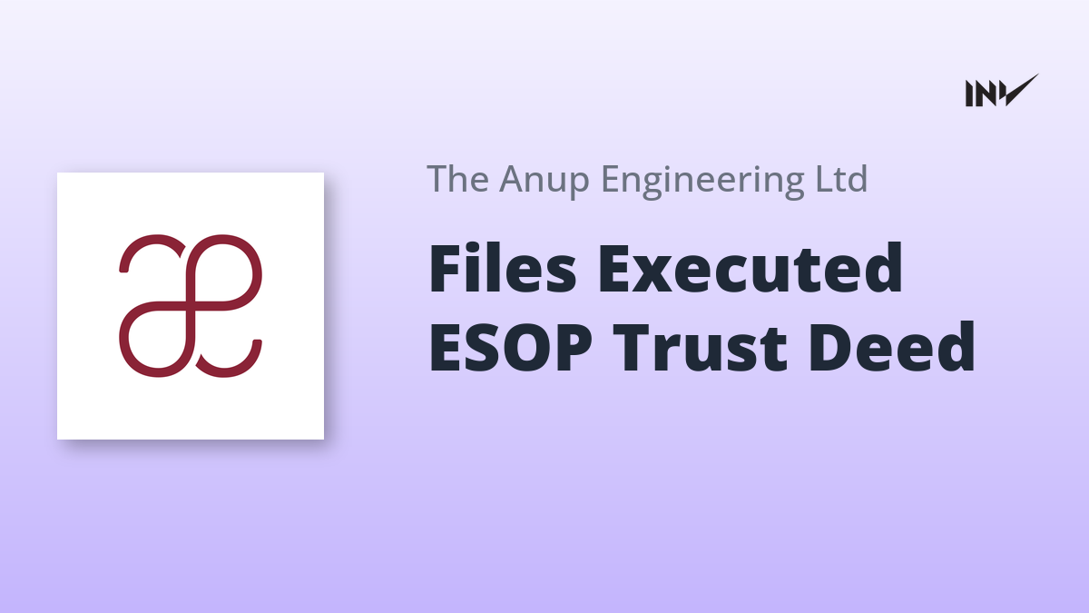 The Anup Engineering Limited has officially submitted the duly executed Trust Deed for the ‘Anup – Employee Stock Option Scheme 2019’. This action is in compliance with regulatory requirements concerning Share Based Employee Benefits. The Trust, named ‘Anup ESOP Trust’, has been established by the company for the purpose of administering and implementing the said stock option scheme for its employees.