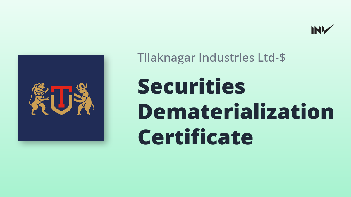 Tilaknagar Industries has received a certificate pertaining to the dematerialization of securities as per regulatory requirements. The certificate, received from Bigshare Services Pvt. Ltd., confirms compliance with Regulation 74(5) of the SEBI (Depositories and Participants) Regulations, 2018.