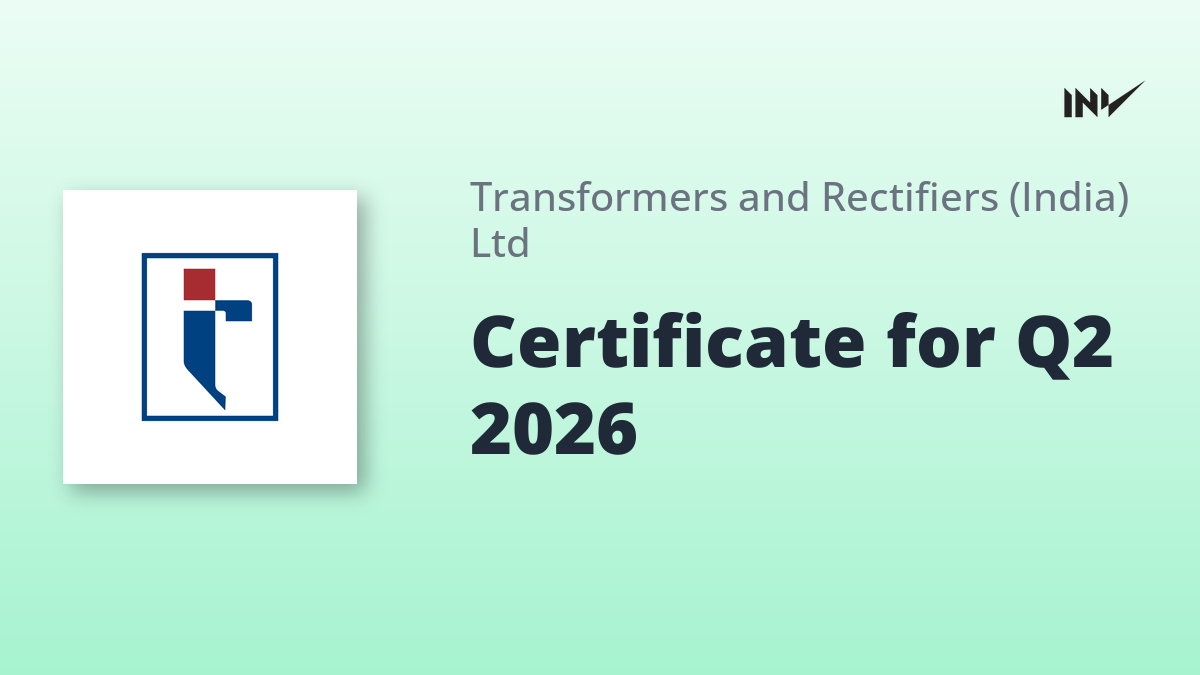 Transformers and Rectifiers (India) Limited has received a certificate under Regulation 74(5) of the SEBI (Depositories and Participants) Regulations, 2018, for the quarter ended September 30, 2025 (Q2 2026). The certificate confirms the dematerialization of securities during this period and compliance with relevant regulations.
