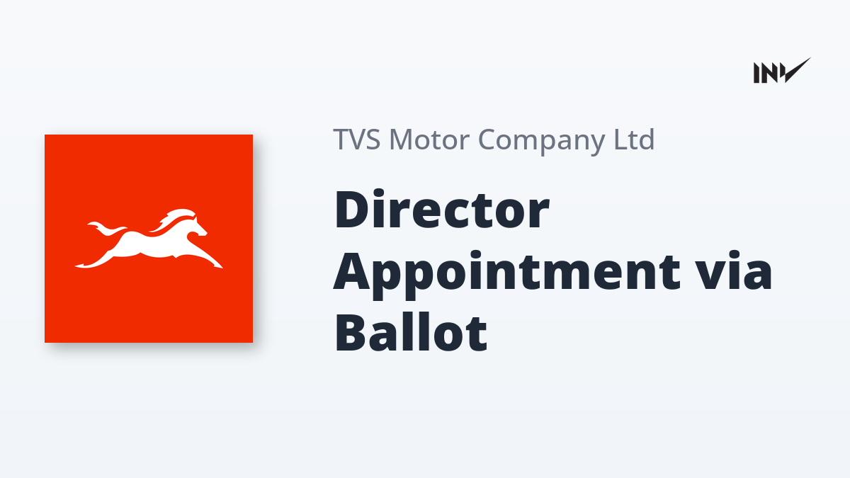 The Board of Directors at TVS Motor Company has approved a proposal to seek shareholder consent via postal ballot for the appointment of Ms. Kalpana Unadkat (DIN: 02490816) as a Non-Executive Independent Director (NE-ID). The approved resolution enables the company to proceed with the necessary steps to finalize the director’s position.