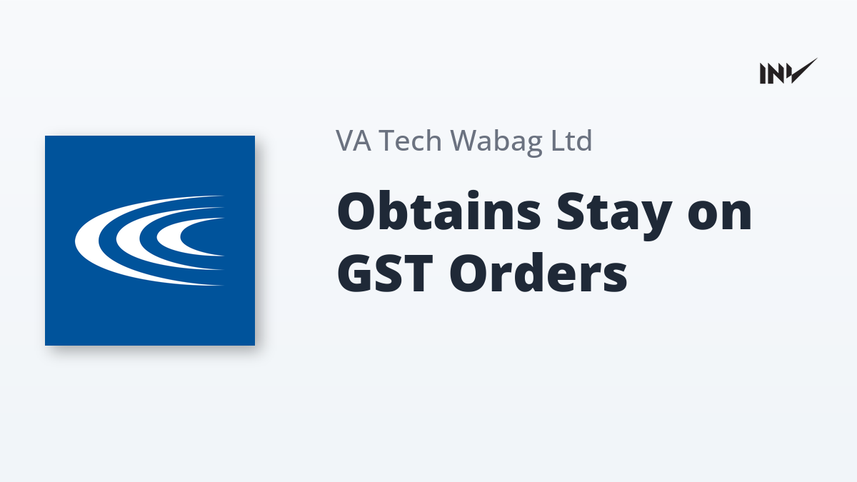 VA TECH WABAG announced that the Hon’ble High Court of Karnataka has granted an interim stay on two disputed Goods and Services Tax (GST) orders. These orders pertained to alleged wrong classification resulting in a tax liability of ₹1.20 crore, plus penalty and interest, and an assessment demand of ₹23.21 lakh from a routine audit. The stay effectively halts the operation and implementation of the original orders until further direction from the Court.