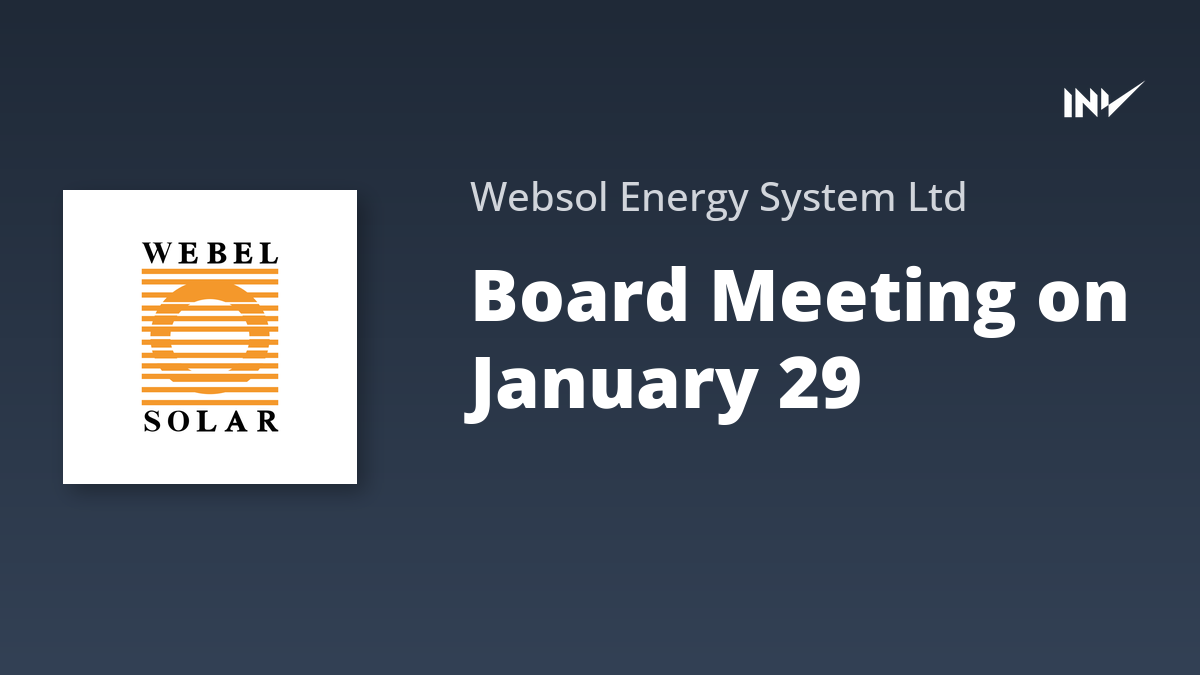 A meeting of the Board of Directors of Websol Energy Systems Limited is scheduled for January 29, 2026, at 5:00 PM. During the meeting, the board will review and approve the company’s unaudited financial results.