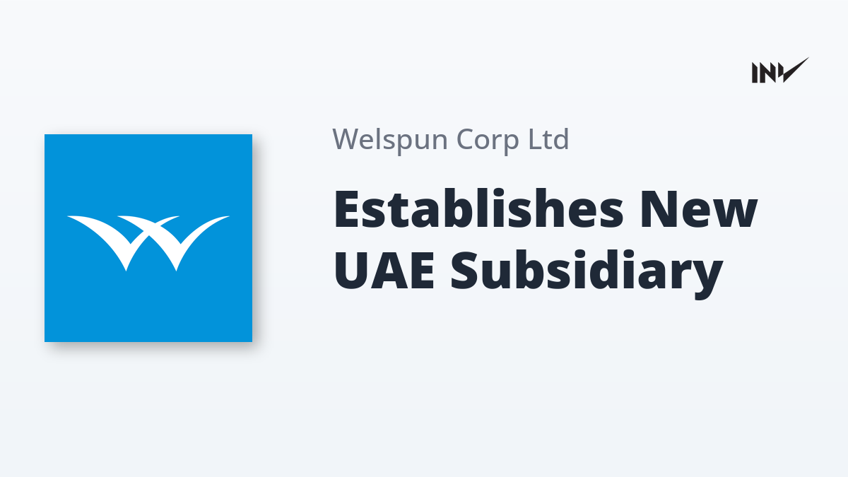 Following up on a previous disclosure made on 30th October, 2025, Welspun Corp Limited confirms the successful incorporation of its Wholly Owned Subsidiary (WOS) in the Free Trade Zone of the United Arab Emirates (UAE).
