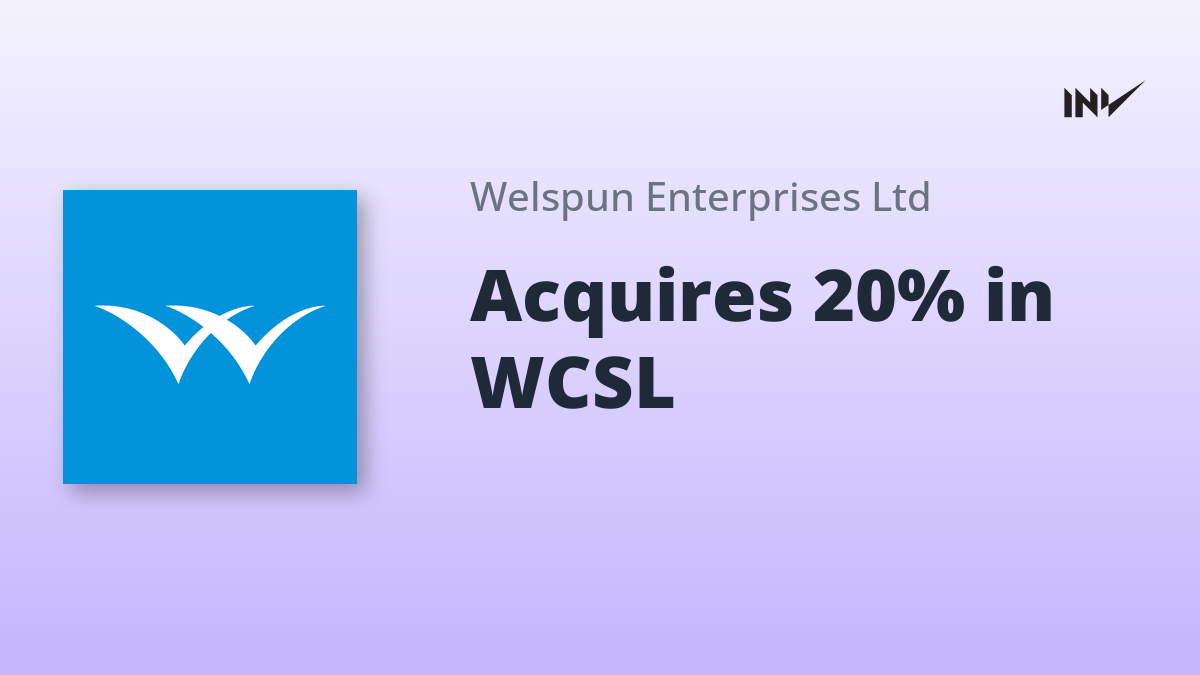 Welspun Enterprises Limited has approved the acquisition of a 20% equity stake in Welspun Corporate Services Limited (WCSL), formerly Welspun Home Textiles Limited. The purchase price for the 2,000 shares is ₹20,000/-. This strategic acquisition aims to establish WCSL as a centralized corporate services platform for the entire Welspun Group, streamlining functions like HR, legal, and tax advisory. WCSL is set to become an associate company post-transaction, which is expected to conclude by March 31, 2026.