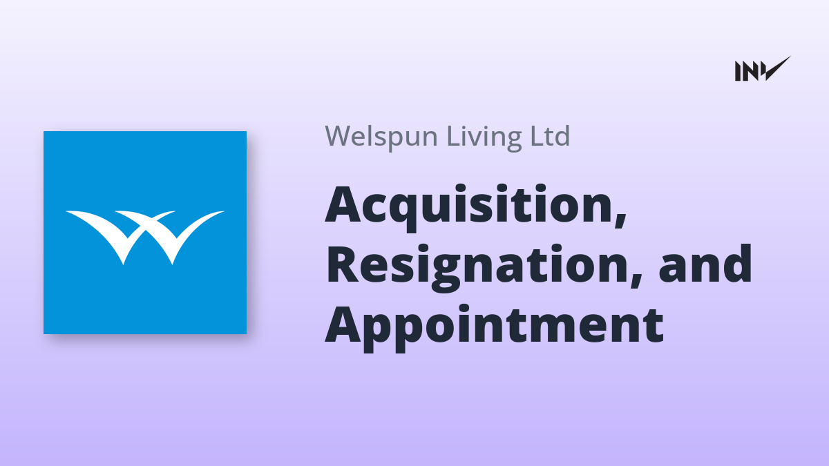 Welspun Living Limited announced that its Board of Directors approved the acquisition of a 35% stake in the newly designated subsidiary, Welspun Corporate Services Limited (WCSL), for ₹35,000. Additionally, the Board noted the resignation of Mr. Rajesh Jain, CHRO, effective March 31, 2026, and approved the appointment of Ms. Sonia Sharma as VP – Human Resource, effective April 01, 2026. Finally, capital expenditure for the Anjar facility power transmission was increased to ₹159.38 Crore.