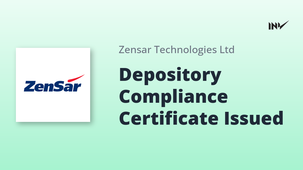 Zensar Technologies has received a certificate confirming compliance with depository regulations for the quarter ending September 30, 2025. The certificate was issued by KFin Technologies Limited, Registrar and Transfer Agent for the company.